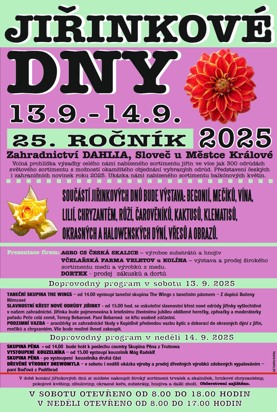 8.9. a 9.9. 2018 od 8:00 do 18:00 - Zahradnictví DAHLIA, Sloveč u Městce Králové JIŘINKOVÉ DNY