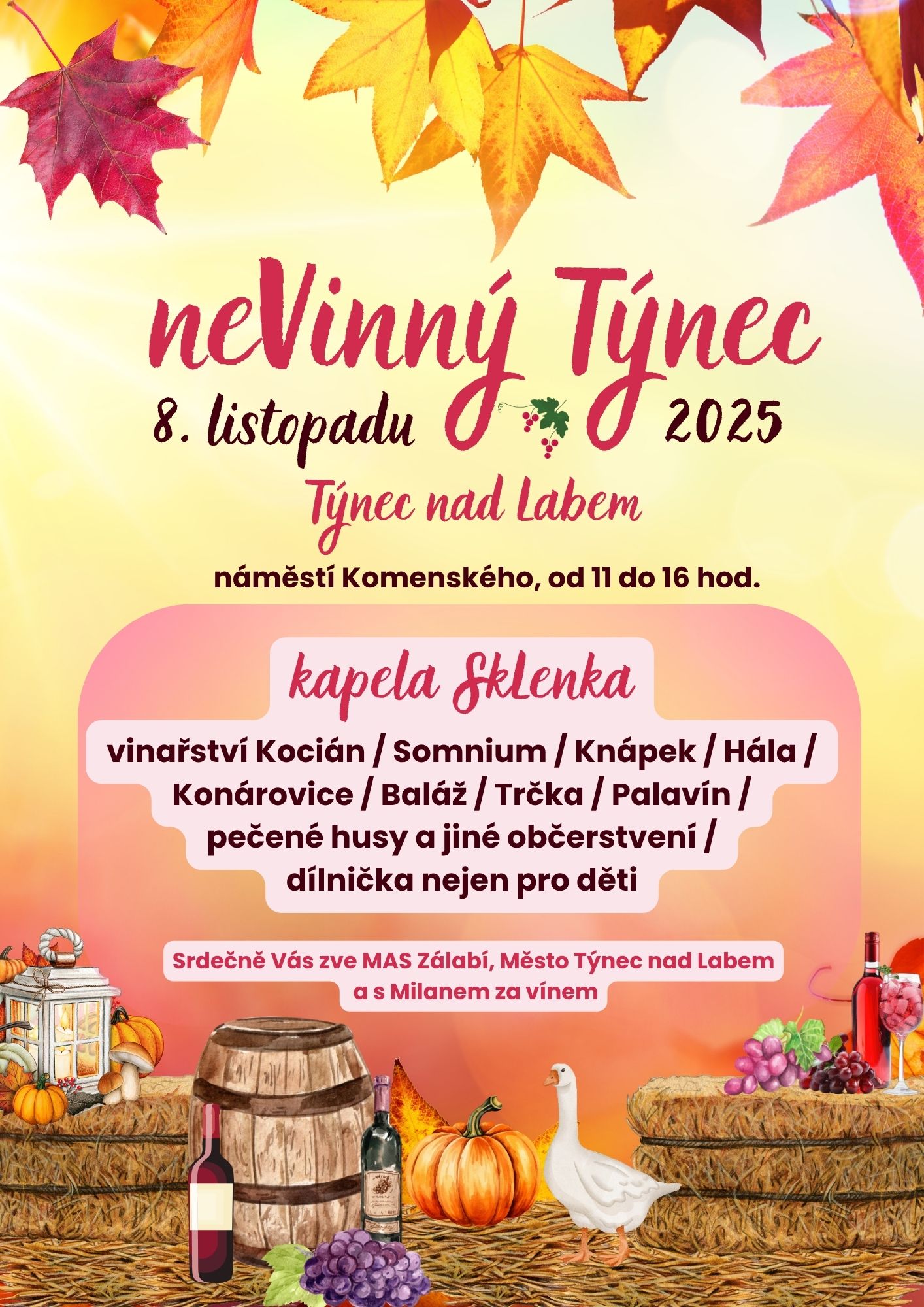 Archiv pořádaných akcí Přehled pořádaných akcí 2025 13. prosince - 14:00-17:00 - Konárovice Betlém v Konárovicích 11. prosince - 10:00-17:00 - Kolín, náměstí Vánoční trh 3. prosince - 14:00-16:00 - Kolín Vánoční besídka u 3.ZŠ Kolín 30. listopadu - 13:00-17:00 - Týnec nad Labem Rozsvěcení vánočního stromečku 29. listopadu - 13:00-17:00 - Malín Malínské adventní odpoledne 8. listopadu, 11:00-16:00 - Týnec nad Labem, náměstí Komenského neVinný Týnec ![]() 13.-14.9. - Zahradnictví DAHLIA, Sloveč u Městce Králové JIŘINKOVÉ DNY ![]() Přehled pořádaných akcí 2024 14. prosince 2024 od 14:00 - Konárovice ŽIVÝ BETLÉM 14. prosince 2024 12:00 - 18:00, Kolín, Karlovo nám. VÁNOČNÍ ŘEMESLNÉ TRHY 7. prosince 2024 12:00 - 18:00, Kolín, Karlovo nám. VÁNOČNÍ ŘEMESLNÉ TRHY 14-15. září 2024 - Zahradnictví DAHLIA, Sloveč u Městce Králové JIŘINKOVÉ SLAVNOSTI 26. srpna 2024 - 8:30 - 17:00 - Kolín, Karlovo náměstí POSVÍCENSKÝ TRH 13. dubna - 14:00 - 17:00 - Týnec nad Labem, Nám. Komenského JARNÍ SLAVNOSTI - řemeslný jarmark ![]() 5. dubna - Futurum Kolín 29. března - 10:00 - 18:00 - Kolín, Karlovo náměstí VELIKONOČNÍ TRHY ![]() 22. března - Futurum Kolín 8. března - Futurum Kolín Přehled pořádaných akcí 2023 3. prosince 2023 - 14:00 - 18:00 - Týnec nad Labem ADVENT V TÝNCI NAD LABEM 9. listopadu 2023 - 8:00 - 17:00 - Kolín, Karlovo náměstí MARTINSKÝ TRH 28. srpna 2023 - 8:00 - 17:00 - Kolín, Karlovo náměstí POSVÍCENSKÝ TRH 3. června 2023 - 10:00 - 17:00 - zámek Kačina FARMÁŘSKÝ TRH ![]() 15. dubna 2023 - 14:00 - 17:00 - Týnec nad Labem, Náměstí Komenského JARNÍ SLAVNOSTI ![]() 6. dubna 2023 - 8:00 - 17:00 - Kolín, Karlovo náměstí VELIKONOČNÍ TRH ![]() Přehled pořádaných akcí 2022 27. listopadu 2022, Týnec nad Labem, 14:00 - 18:00 ADVENT V TÝNCI NAD LABEM ![]() 10. listopadu 2022 - 8:00 - 17:00 - Kolín, Karlovo náměstí MARTINSKÝ TRH ![]() 13. října 2022 - 8:00 - 17:00 - Kolín, Karlovo náměstí HAVELSKÝ TRH 23. září 2022 - 9:OO - 15:00 - Kolín, Karlovo náměstí ŘEMESLNÝ JARMARK ![]() 17. září 2022 - 9:00-18:00 - Týnec nad Labem PODZIMNÍ SLAVNOSTI ![]() ![]() 10-11. září 2022 - Zahradnictví DAHLIA, Sloveč u Městce Králové JIŘINKOVÉ SLAVNOSTI Přehled pořádaných akcí 2021 28. listopad 2021 - 14:00 - 17:00 ADVENT V TÝNCI NAD LABEM ![]() 30. srpna 2021 - Kolín náměstí POSVÍCENSKÉ TRHY 11.-12.září 2021 - Zahradnictví DAHLIA, Sloveč u Městce Králové JIŘINKOVÉ DNY Přehled pořádaných akcí 2020 31. 8. 2020 - Kolín, Karlovo náměstí POSVÍCENSKÝ TRH 12.- 13. 9. 2020 od 8 do 18 hodin - Zahradnictví DAHLIA, Sloveč u Městce Králové JIŘINKOVÉ DNY 20.ročník Přehled pořádaných akcí 2019 6.12. 2019 od 8:00 - Sázava, ZŠ PŘEDNÁŠKA O ŽIVOTĚ VČEL ochutnávka medu, prodej včelích produktů 10.12. 2019 od 8:00 - Tři Dvory PŘEDVÁNOČNÍ TRH 12.12. 2019 od 13:00 - Kolín, 3.ZŠ PŘEDVÁNOČNÍ PRODEJ VÝROBKŮ ŽÁKŮ ŠKOLY + vystoupení žáků školy 14.12. 2019 od 14:00 - Konárovice ŽIVÝ BETLÉM A ŘEMESLNÝ JARMARK 7.11. 2019 od 8:00 do 17:00 - Kolín, Karlovo náměstí MARTINSKÝ TRH 9.11. 2019 od 12:00 - Labské Chrčice ŘEMESLNÝ JARMARK bohatý program, od 20:00 ohňostroj 30.11. 2019 od 16:00 - Veltruby ROZSVÍCENÍ VÁNOČNÍHO STROMKU předvánoční vystoupení dětí 1.12. 2019 od 16:00 - Týnec nad Labem PŘEDVÁNOČNÍ JARMARK rozsvícení vánočního stromku, kulturní program 14. 9. 2019 od 8:00 do 12:00 - Zahradnictví Jan Diviš - Radonice Akce Včelařské dopoledne s Včelí strážíVčelí stráž je celostátní spolek zaměřený na propagaci včelařství, včel a ostatních hmyzích opylovačů. Včelí stráž popularizuje včelařství pro laickou veřejnost a mládež. Pod vedením Jiřího Cafourka a jeho týmu se dozvíte zajímavosti ze světa včel. Zároveň si budete moci zakoupit med, medovinu a různorodé produkty od včelařské farmy Veletov. 14.9. a 15.9. 2019 od 8:00 do 18:00 - Zahradnictví DAHLIA, Sloveč u Městce Králové JIŘINKOVÉ DNY - 19. ROČNÍK